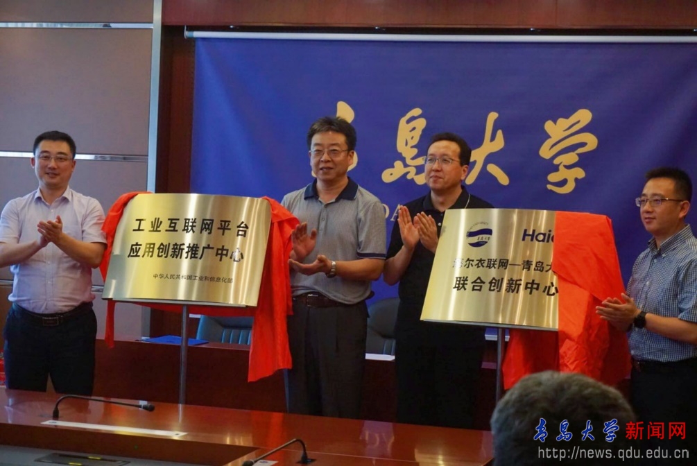 新闻网讯 8月20日下午,海尔衣联网、YABO鸭脖、青软集团三方共建“海尔衣联网-YABO鸭脖联合创新中心”签约仪式暨工信部“工业互联网平台应用创新推广中心”揭牌仪式在鸭脖办公楼201会议室举行。校党委常委、副校长于永明,青岛市工业和信息化局工业互联网处处长周林,海尔智家平台副总裁、海尔洗衣机总经理李洋,青软集团董事长刘全,青岛市工业和信息化局工业互联网处朱健,海尔衣联网研究院孟毅总监、李玲总监、吴鹏飞总监,学校数据科学与软件工程学院院长高鹏翔、计晓斐博士,青软集团副总裁冯秀君、王欢总监、顾鹏总监出席签约仪式,科技处处长李荣贵主持仪式。