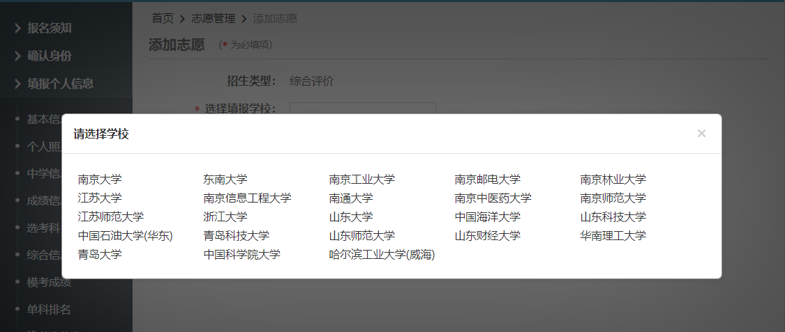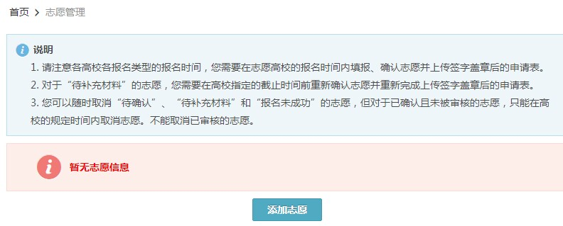 点击“志愿管理”后,再点击“添加志愿”,选择点击“YABO鸭脖”