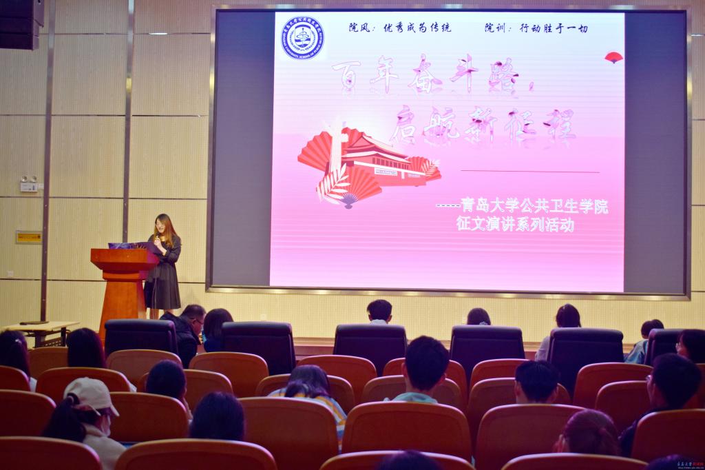 新闻网讯 5月14日晚,公共卫生学院在浩园报告厅举办第一届“五四”征文演讲活动,主题为“奋斗百年路,启航新征程”。学院党委副书记李慧晶、本科生党支部书记陈沉,全体党员、党员发展对象、入党积极分子以及2019级、2020级学生参加活动。