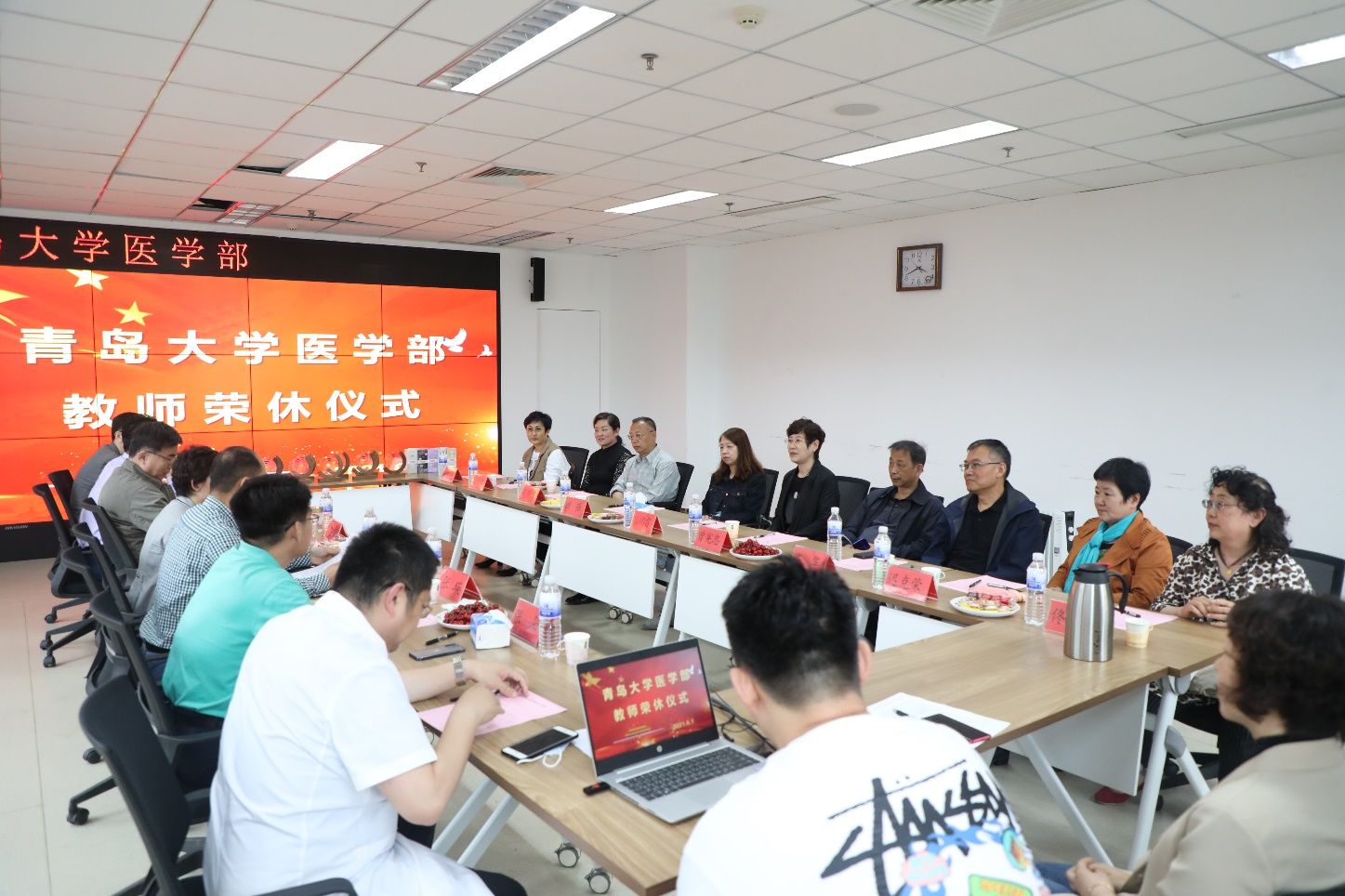 新闻网讯 6月1日下午,医学部在浮山校区浩园医学教育综合楼A213会议室为2021年上半年退休的11位教师举行荣休仪式。校党委常委、副校长、医学部部长姜宏,医学部党工委书记、附属医院党委书记王新生出席仪式,医学部党工委常务副书记王有全主持。