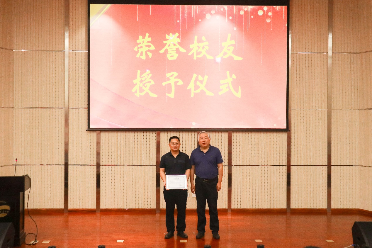 在场嘉宾和领导老师分别为研究生优秀报告一、二、三等奖、研究生优秀海报奖和本科生优秀奖颁发获奖证书和奖金。颁奖结束后,校企双方签署了共建基地学生创新创业教育实践合作协议,张启春和耿超共同为实践基地揭牌,李悦为耿超颁发了“荣誉校友”赠牌。最后,获奖同学2018级研究生楚光玉和2019级研究生杨唯真分别分享了各自的科研经历。