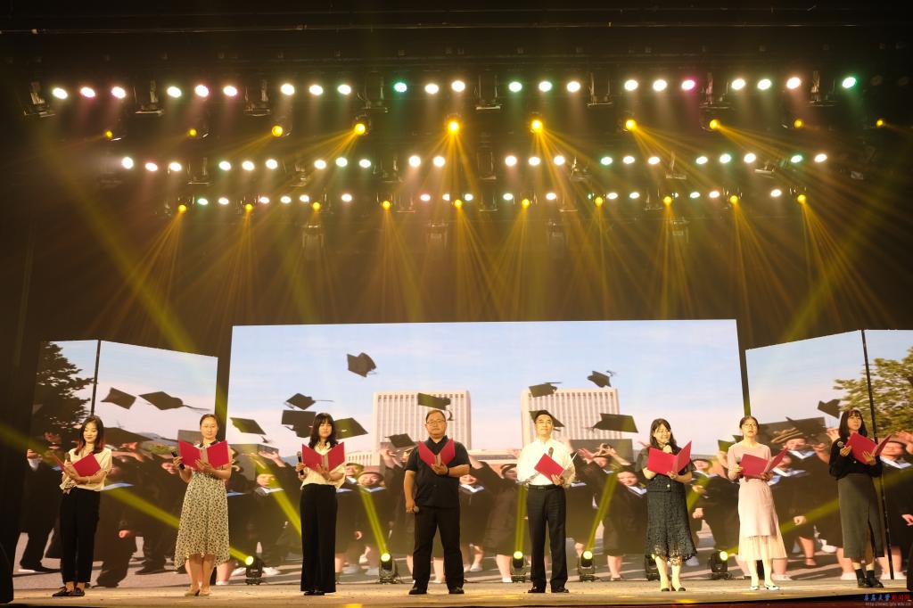 毕业生们用美妙的歌声唱出了青春时光的真挚友谊,用魅力四射的舞蹈展示着青春的活力,用动人的表演表达了对大学生活的怀念与对母校的不舍之情。辅导员教师代表的诗朗诵《梦想出发的地方》,将与同学们相处的点点滴滴娓娓道来,用最真挚的语言表达了对同学们的依依惜别之情、深深祝福之意。