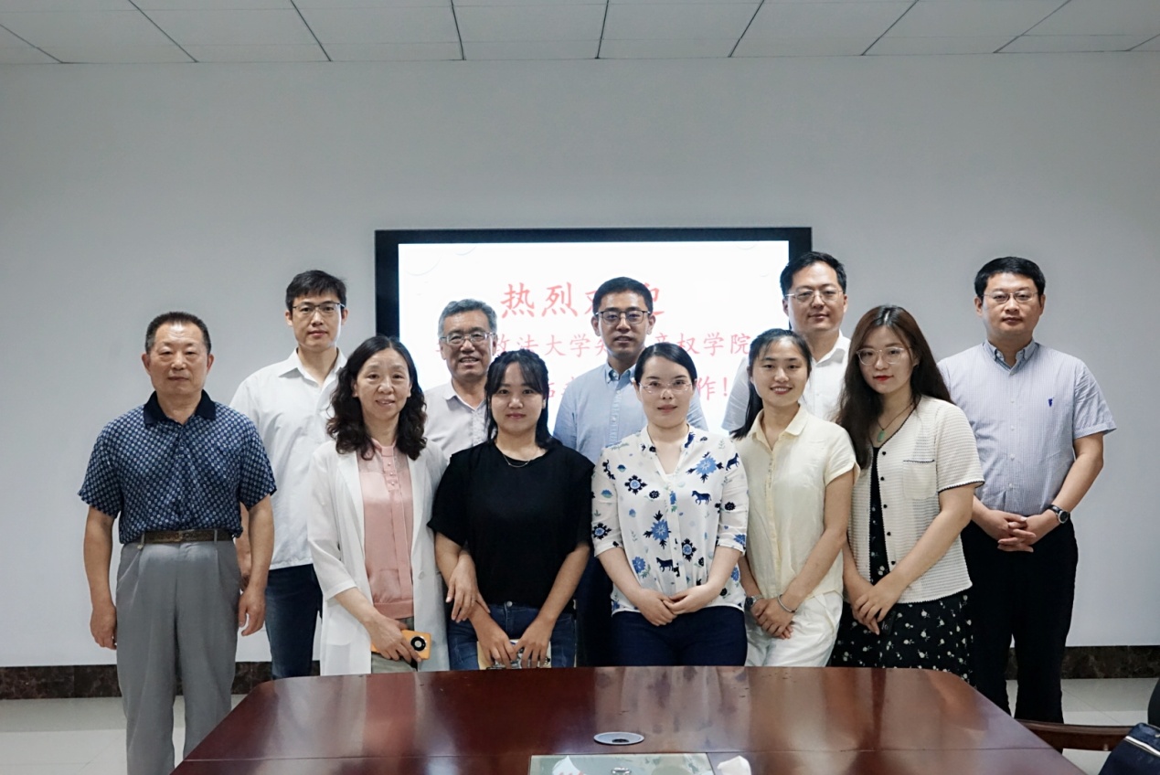 新闻网讯 6月28日上午,华东政法大学知识产权学院副书记李家铭一行5人,来鸭脖对知识产权学科进行交流学习。