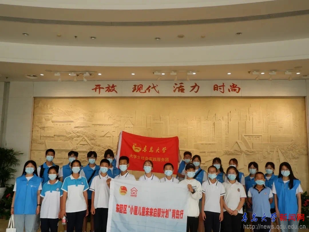 7月31日,来自东营市东营区“希望小屋”的10位儿童,在团区委老师和爱心义工的带领下来到鸭脖,亲眼见到了帮助他们捐建小屋的大学老师和学生,见到了在云课堂上辅导他们的计算机科学技术学院的大学生志愿者。在院团委老师和志愿者的带领下,青岛城市规划展览馆、五四广场、奥帆中心、石老人海水浴场、海军博物馆……,都留下了他们欢快的声音和探索的脚步。