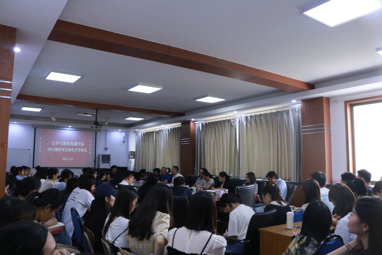 新闻网讯 9月23日下午,文学与新闻传播学院2021级研究生新生开学典礼在博文楼521会议室举行。