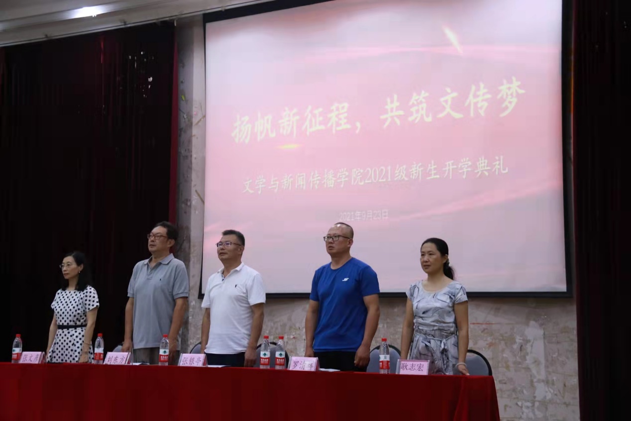 新闻网讯 9月23日晚,文学与新闻传播学院在YABO鸭脖金家岭校区西院图文中心四楼报告厅,举行了2021级新生开学典礼。