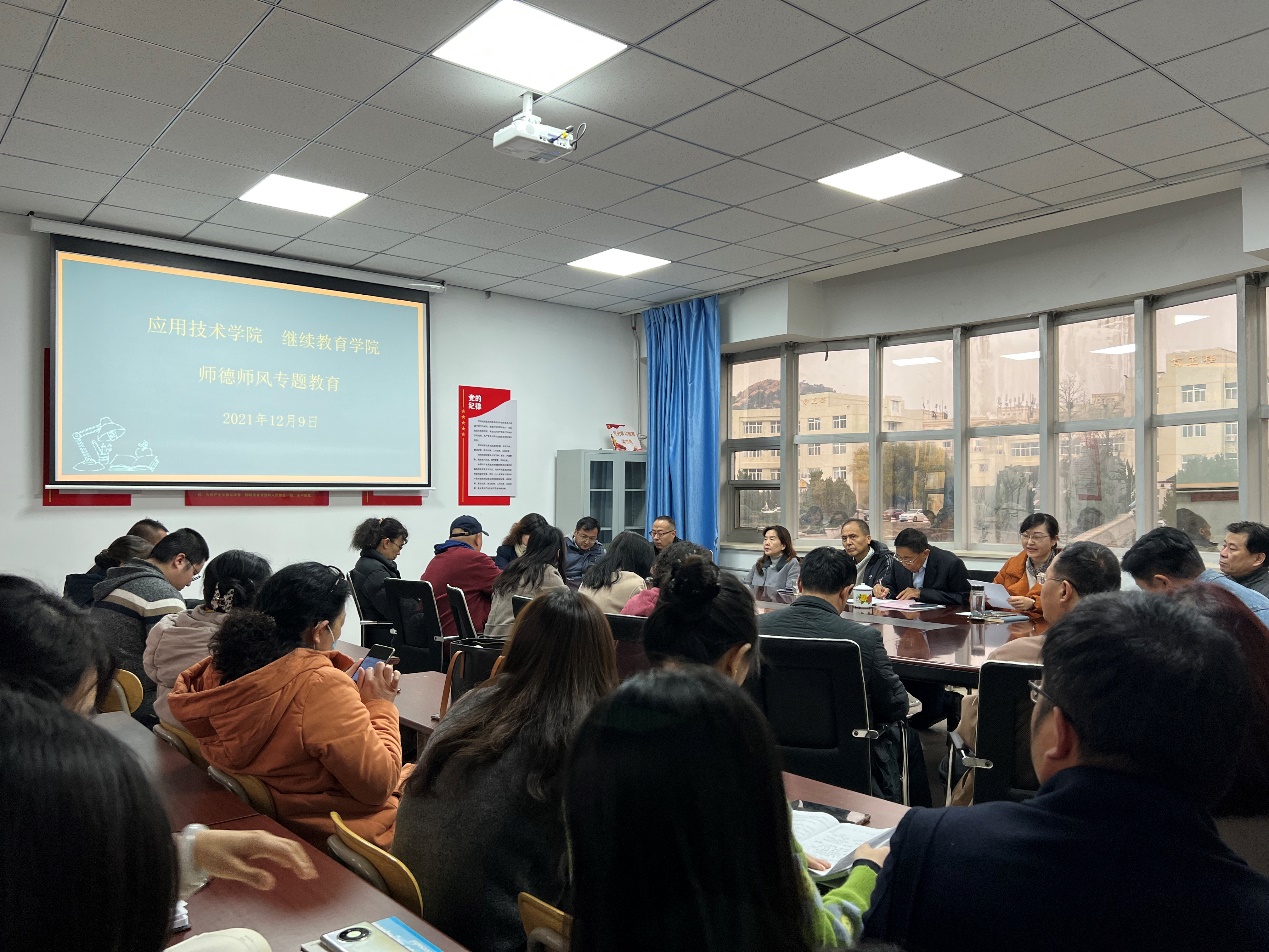 新闻网讯 为进一步加强师德师风建设,12月8日下午应用技术学院 继续教育学院在金家岭校区东院行正楼310会议室开展“树师德、正师风”专题教育。