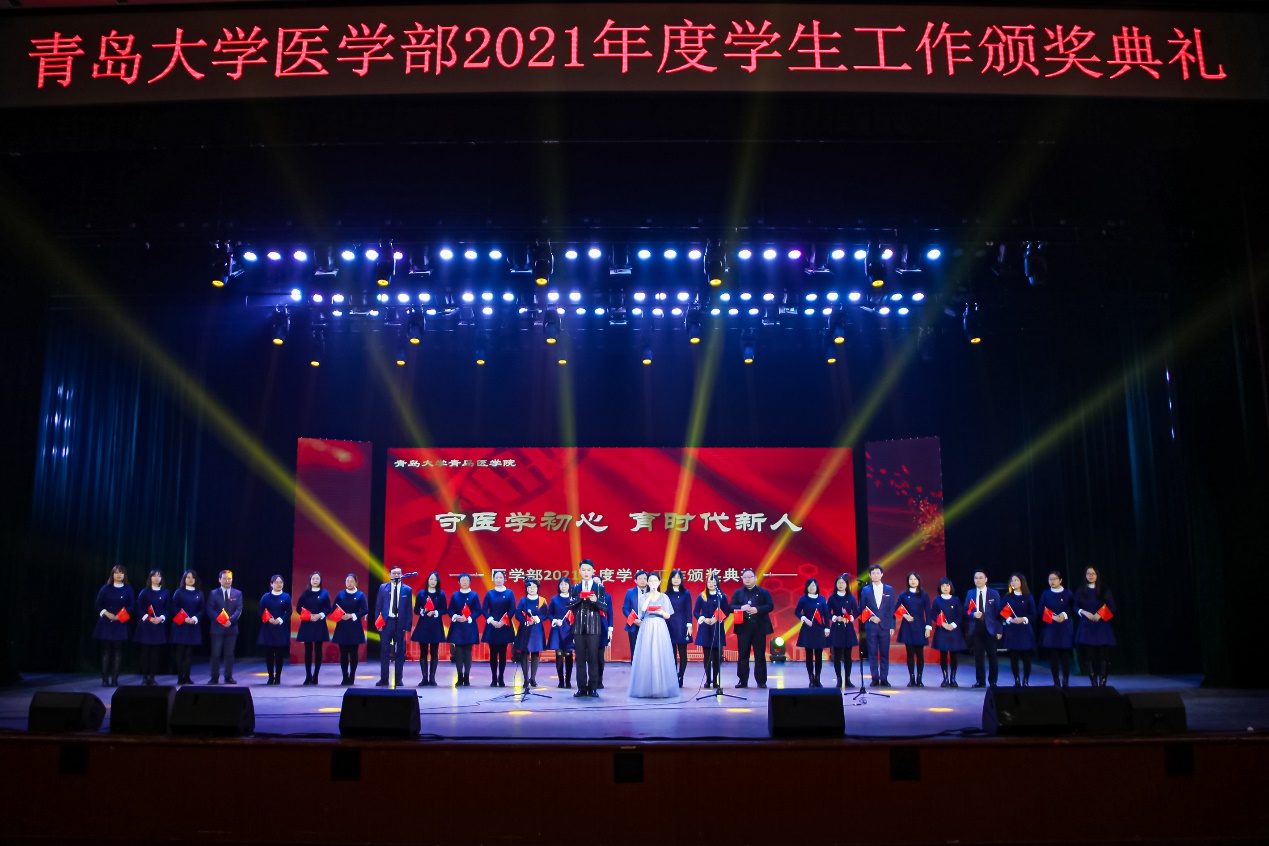 典礼上,通过播放《医学部2021年度学生工作巡礼》视频,回顾总结了学部学生工作在思想政治教育、学风建设、校园文化建设和学工队伍建设等方面取得的成绩,并进行了一系列颁奖。
