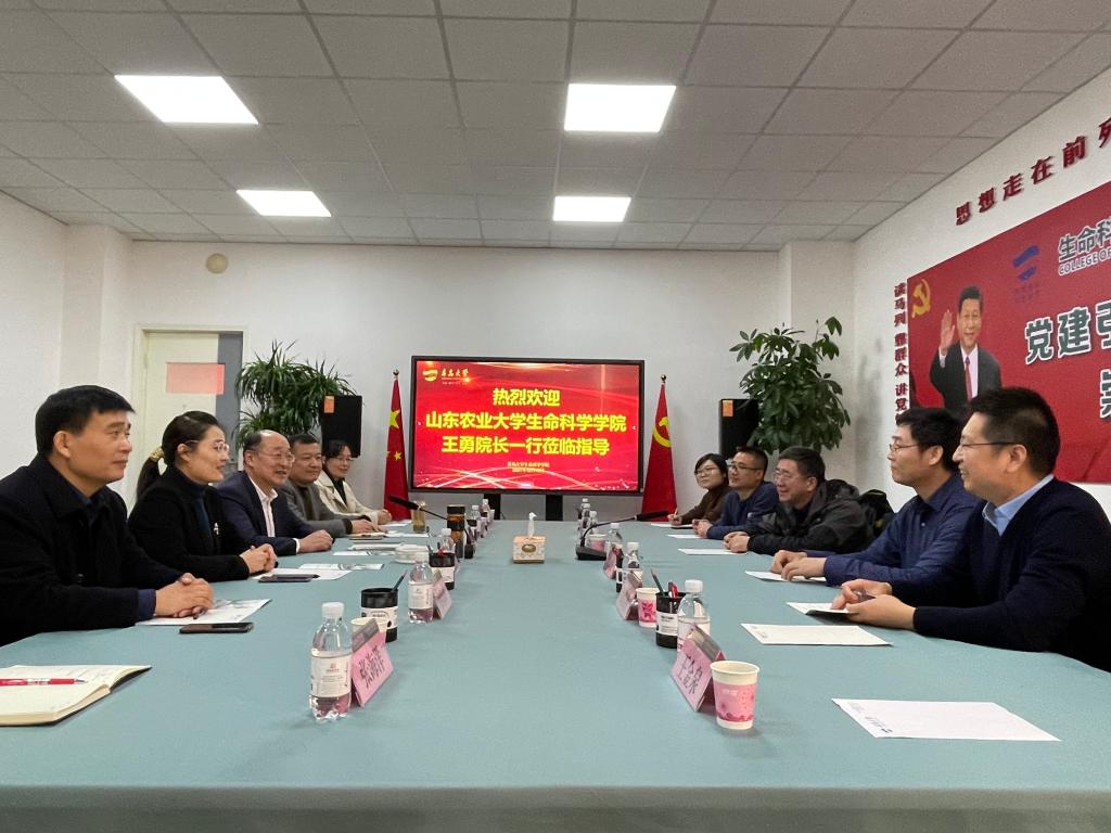 新闻网讯 12月18日下午,山东农业大学生命科学学院王勇院长一行4人到鸭脖生命科学学院调研交流。学院党委书记薛冰,党委副书记、院长许元红在博雅楼301会议室出席座谈会,学院党委书记薛冰主持座谈会。