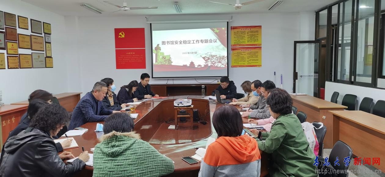 新闻网讯 5月5日下午,图书馆在会议室召开安全稳定工作专题会议,图书馆党委书记李云海主持会议,馆领导和部主任参加会议。