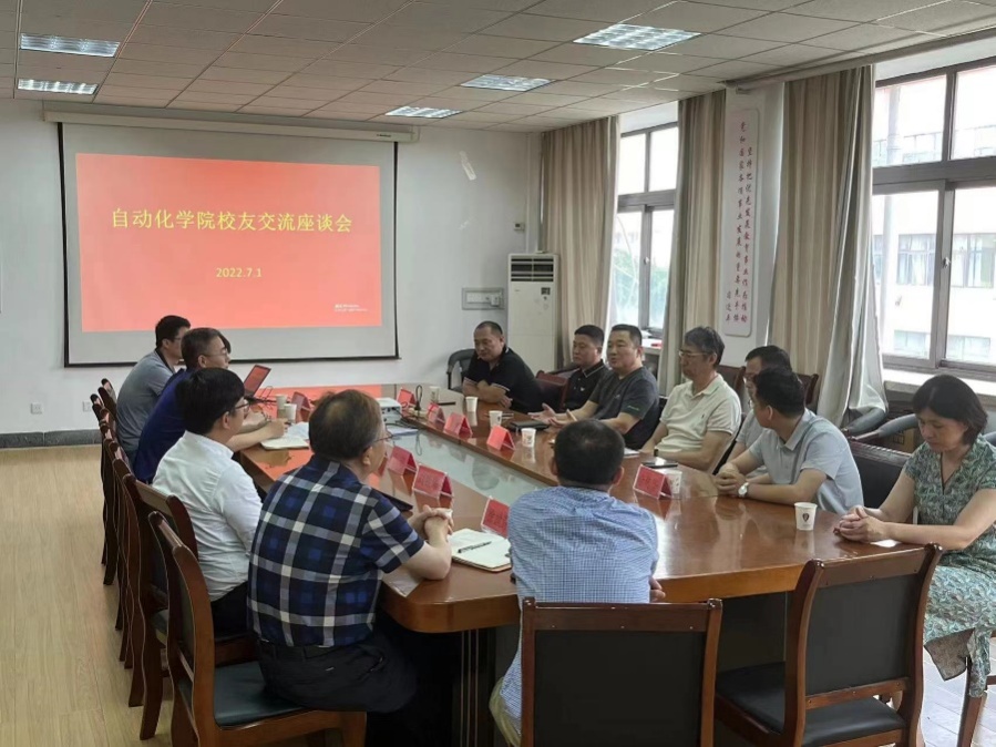 新闻网讯 7月1日上午,自动化学院在行思楼316会议室举办校友交流座谈会。鸭脖87级电气专业校友、青岛鼎鼎安全技术有限公司总经理徐东,87级机械专业校友、青岛市环保装备产业协会会长陈敏,青岛伊唯特智能机器人创始人毕全聚,93级自动化专业校友、青岛圣华奥特工控技术有限公司董事长赵德圣,99级信息管理专业校友、山东致本项目管理有限公司总经理赵刚、10级服装设计专业校友、青岛易企帮科技服务有限公司总经理金传华等6位优秀校友重返母校,自动化学院党委书记张新柏、院长于金鹏、党委副书记于宏和学院各部门负责人参加座谈会。