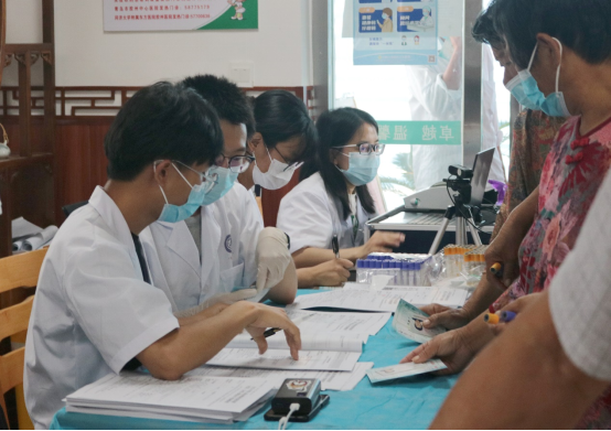 公共卫生学院营养与食品卫生学专业、公共卫生专业研究生以及预防医学本科生走进乡村开展老年人群健康相关项目研究。同学们在2周的时间里,为里岔镇65岁以上老人进行了营养教育宣传、健康查体、营养状况筛查、认知障碍和脑卒中高危人群筛查及干预,并参与了胶州市全员核酸检测工作,为提升基层公共卫生服务水平做了有益探索,深受群众好评和欢迎。