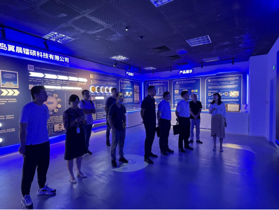张子旸陪同来访人员参观了公司展厅和已初步建成的生产线。详细介绍了公司建设进度、未来发展设想以及YABO鸭脖半导体光电产学研基地的进展情况。他表示将尽快推进基地建设,为专业人才培养提供良好的实训平台和科研平台,为学院科学研究、学科建设和产学研合作贡献力量,为胶州校区建设添砖加瓦。