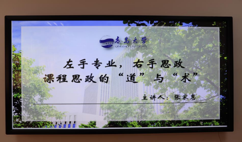 此外,她还提出了教什么,为什么教,怎样教的三步课程思政之术。她强调思政的教育点在于史、时、实,要引导学生学习党史、校史等,要与时俱进、关注时代热点、关注学生们的兴趣点等,同时要通过实践、创新创业课程等培养学生的创造意识,动手能力等等。最后她提出课程思政之道在于有意识、有情怀、有大爱,达到“春风化雨,润物无声“的效果。
