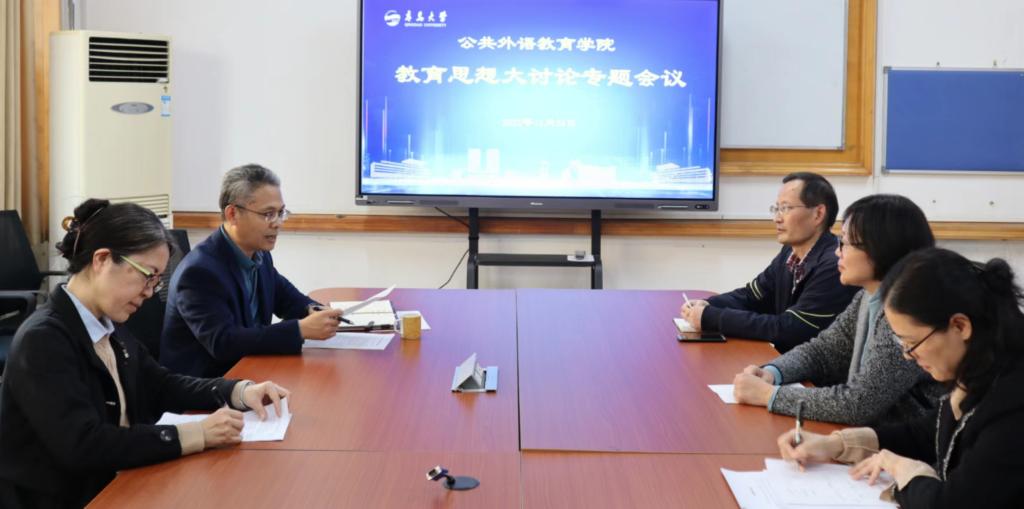 新闻网讯 近日,公共外语教育教育学院组织系列活动,积极开展第三次教育思想大讨论暨迎接新一轮本科教育教学审核评估。学院领导班子成员、各教研室主任、党支部书记、课程负责人及全体教师以线上线下多种形式参加活动。在活动过程中,学院教师全员参与,积极讨论,教育思想大讨论取得了初步成效。