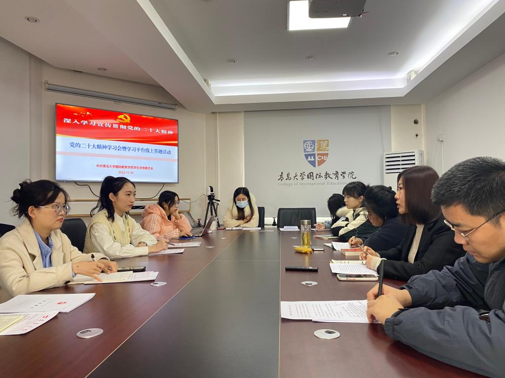 新闻网讯 为深入学习宣传贯彻党的二十大精神,迅速把思想和行动统一到党的二十大精神上来,推动全院持续兴起学习宣传贯彻党的二十大精神的热潮,国际教育学院党委围绕“学习宣传贯彻党的二十大精神”组织开展了形式多样的系列活动。