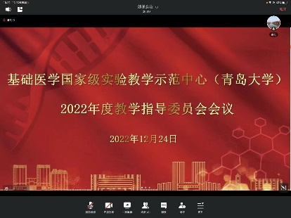 新闻网讯 12月24日,基础医学国家级实验教学示范中心(YABO鸭脖)2022年度教学指导委员会线上会议顺利召开。教务处副处长(主持工作)马泽刚,医学部副部长李冰,基础医学院党委书记丛红群、院长王建勋以及其他党政班子领导、各部门主任及实验中心全体人员参加了会议。来自国内其他兄弟院校、教学指导委员会各位专家受邀线上参会。会议由王建勋主持。