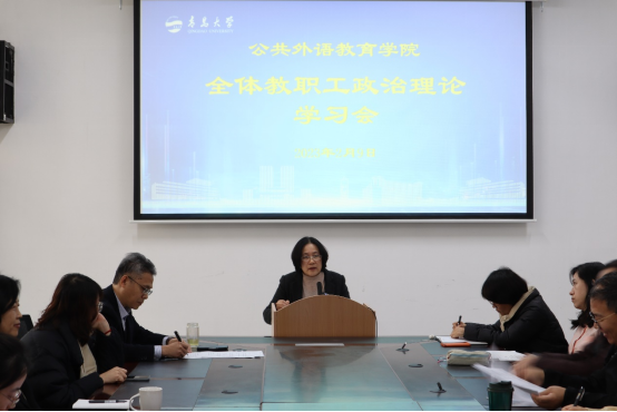 新闻网讯 2月9日,公共外语教育学院在睿思楼202会议室召开2023春季学期期初工作会议,开展集体学习、传达学校会议精神、部署新学期工作。学院领导、教研室主任、党支部书记及教师代表现场参会。