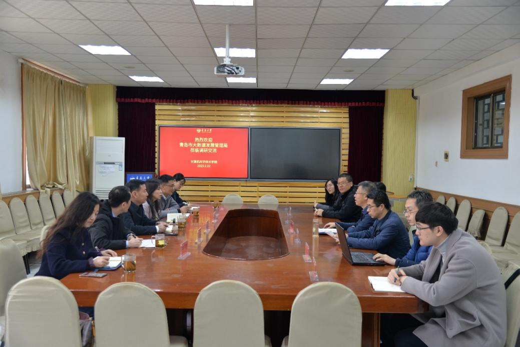 新闻网讯 3月22日上午,青岛市大数据发展管理局办公室主任、一级调研员戴雪冰等一行6人来计算机科学技术学院调研数字化人才培养、产学研及科技成果转化等情况。院党委书记潘秋鸿、院长郭振波及学院相关党政领导、教师参加座谈交流。