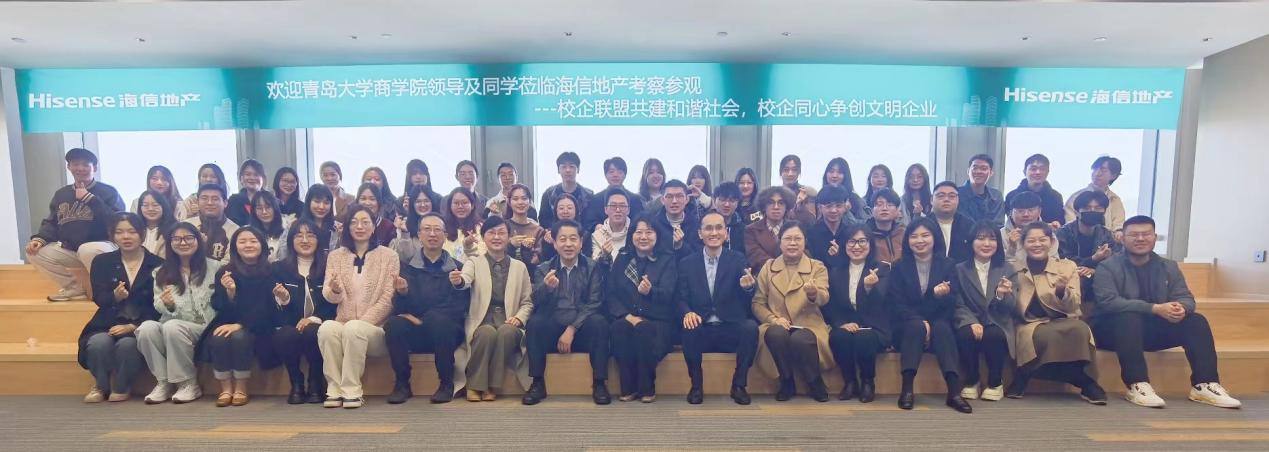 新闻网讯 为进一步贯彻党中央、国务院关于高校毕业生就业工作的决策部署,落实教育部和山东省教育厅“访企拓岗促就业”专项行动通知要求。3月31日,商学院党委书记王功勇、副书记尼梅颉带领50余名师生,赴青岛海信地产参观调研。青岛海信地产副总裁范玉、人力资源部经理李保民等参会并做交流发言。