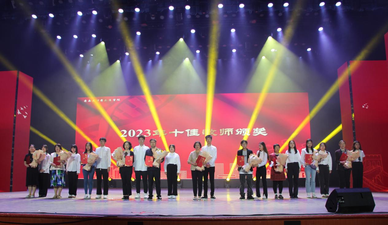 晚会前期,为感谢各位教师的辛勤付出,经过精心设计、广泛征集,评选出沈若武、张皓、闫志勇、李琦、董静、璩竹玲、薛雁、项锋钢、滕雷、陈蕾十位最受学生喜爱的“十佳教师”。晚会上,十位教师上台领奖,并为同学们送上了最真挚的祝福。