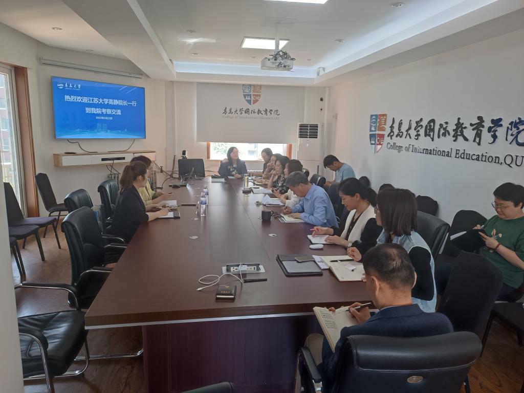 国际教育学院党委书记纪皓瑛向江苏大学一行详细介绍了学院党建、师资队伍等基本情况,副院长原明亭则详细介绍了学院国际化办学、来华留学生教育的基本情况。