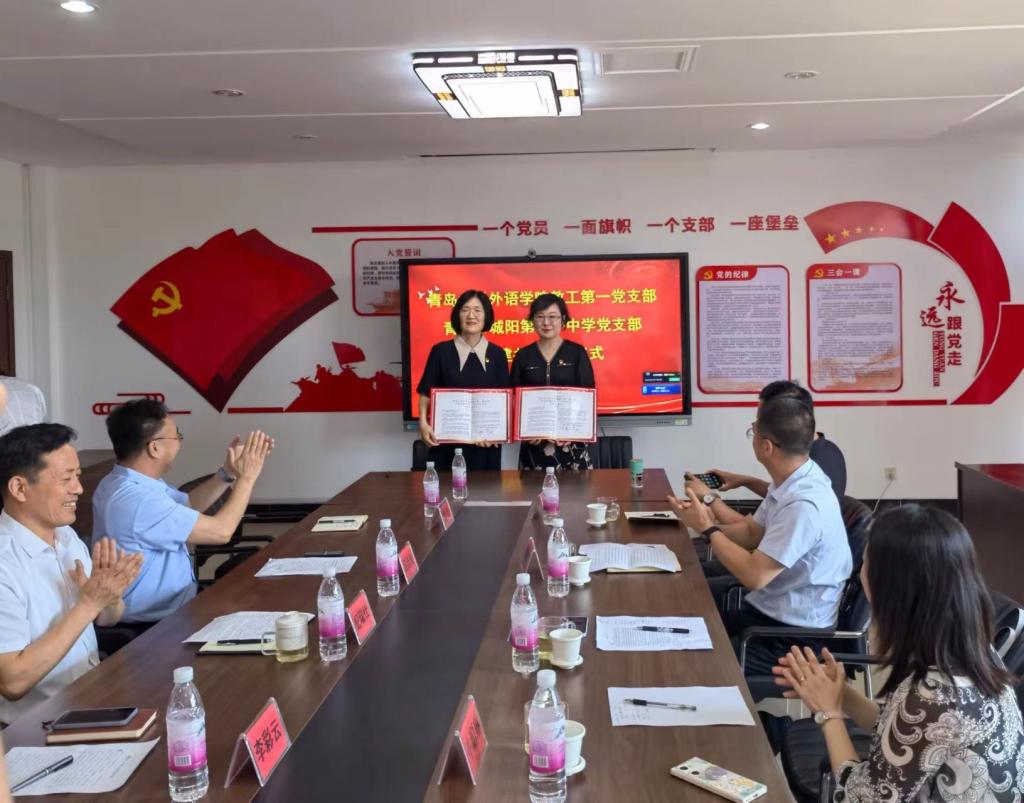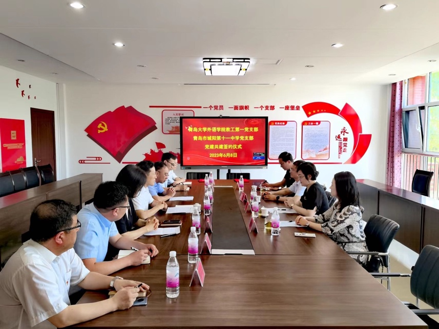 新闻网讯 为创新基层党建工作载体,提高基层党建工作水平,推动学习贯彻习近平新时代中国特色社会主义思想主题教育走深走实,6月8日上午,外语学院教工第一党支部和青岛市城阳区第十一中学党支部举行支部共建签约仪式。学院党委书记周伟,红岛教育服务中心党总支书记纪瑞仕,城阳区第十一中学校长吕廷良等双方相关领导出席活动。