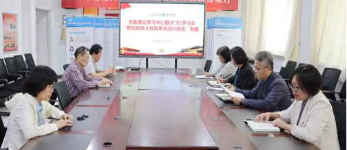 新闻网讯 近日,公共外语教育学院党委理论学习中心组在睿思楼202会议室举行扩大学习会,专题学习党的自我革命。学院党委书记刘海荣主持学习会,院党政领导班子、党委委员、党支部书记、教研室主任参加会议。