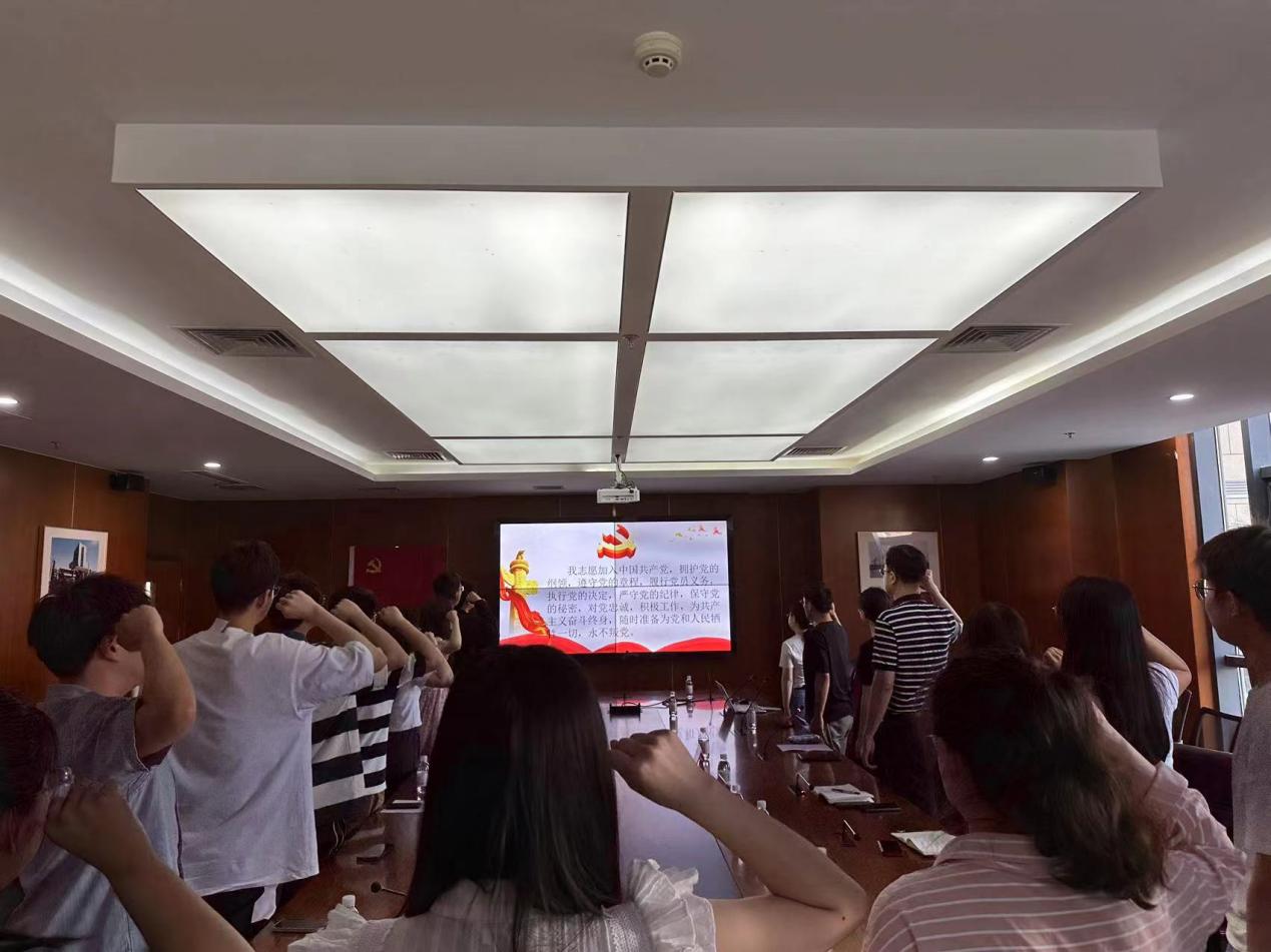 全体同志共同观看了党支部精心制作的毕业纪念视频《心怀梦想 不惧远方》。毕业生党员回顾了自己的校园生活,表示今后将时刻牢记党员身份,充分发挥党员的先锋模范作用,不负母校、报效祖国。随后,全体同志面向党旗重温入党誓词。