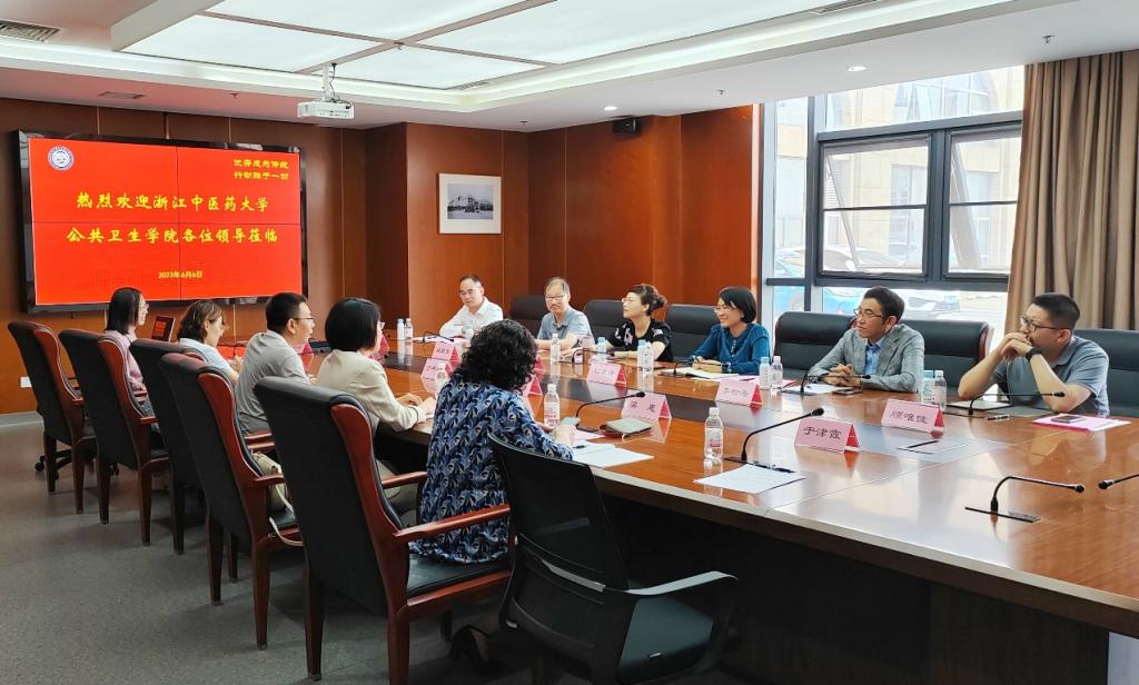 新闻网讯 近日,浙江中医药大学公共卫生学院党委书记王斌艳、院长刘翠青带领相关学系、内设机构负责人等一行6人到鸭脖公共卫生学院进行主题教育调研。鸭脖公共卫生学院党委书记贾依娜、院长郑玉新、常务副院长于典科等党政领导班子成员,及相关学系主任、副主任等教师代表参加交流座谈。