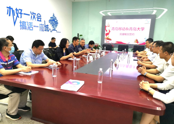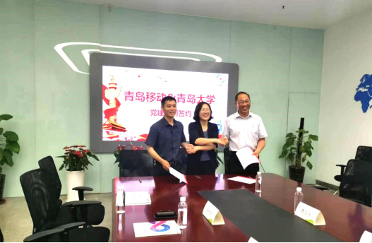 新闻网讯 近日,公共外语教育学院党委、智慧校园与信息化建设中心党支部与中国移动崂山分公司党支部在世贸中心青岛5G城市名片展厅签订了“党建和创”活动倡议书。