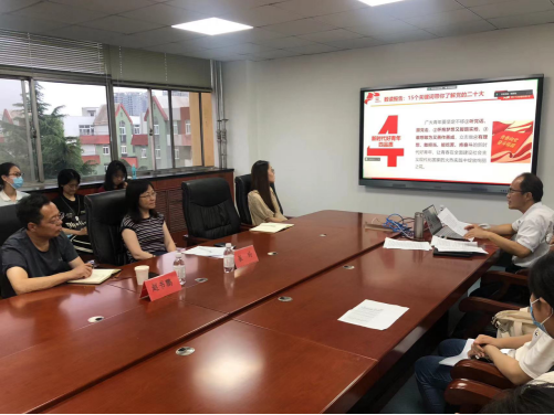 新闻网讯 6月29日,口腔医学院党委书记李敏以“思想伟力领航向 擘画复兴新蓝图—--学习中国共产党第二十次全国代表大会精神”为题,在松山校区综合楼507会议室为全院学生党员讲授专题党课。校党委组织员赵书鹏到会指导。