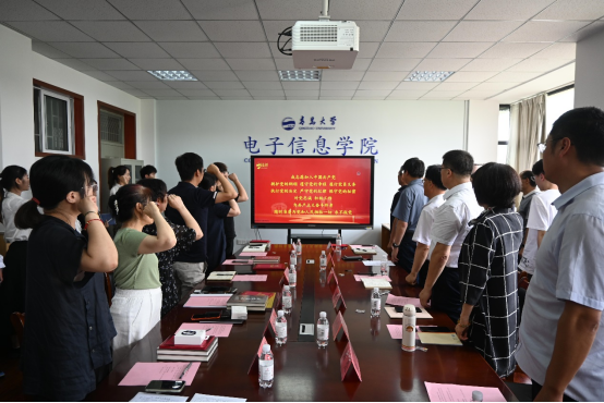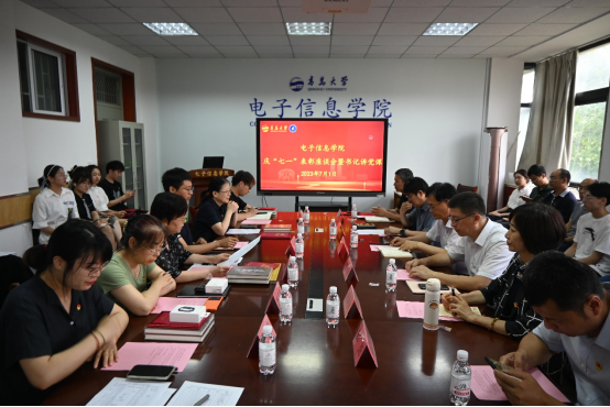 新闻网讯 6月29日下午,电子信息学院在诚思楼407会议室召开庆“七一”表彰座谈会暨书记讲党课活动,校主题教育督导组组长李升学出席会议,院系班子成员、教师党员、学生党员代表以及受表彰全体师生参会。