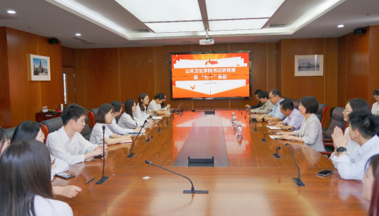 新闻网讯 6月30日上午,公共卫生学院在医学综合楼会议室举办主题教育专题党课暨“七一”表彰活动。校党委组织员赵书鹏到会指导,学院党政领导班子、系主任、教师代表、学生代表参会。