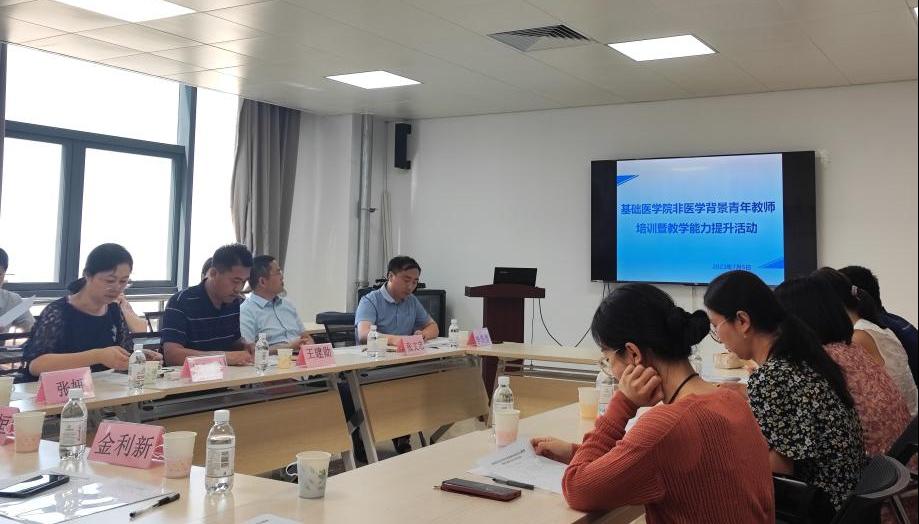 新闻网讯 为提升非医学背景青年教师岗位胜任力,建设高质量师资队伍,7月5日,基础医学院在浩园医学教育综合楼举办非医学背景青年教师培训暨教学能力提升活动。学院党委书记丛红群,院长王建勋以及学院其他相关领导、临床专家及基础医学院的教学名师、青年教师参加了此次活动。