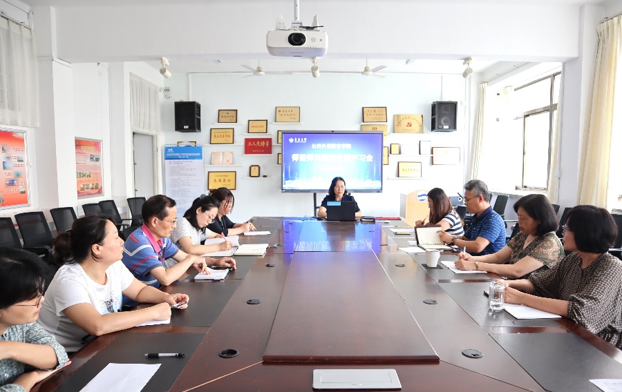 新闻网讯 7月7日下午,公共外语教育学院召开师德师风教育专题学习会,全体教职工参加学习。院党委书记刘海荣主持会议。