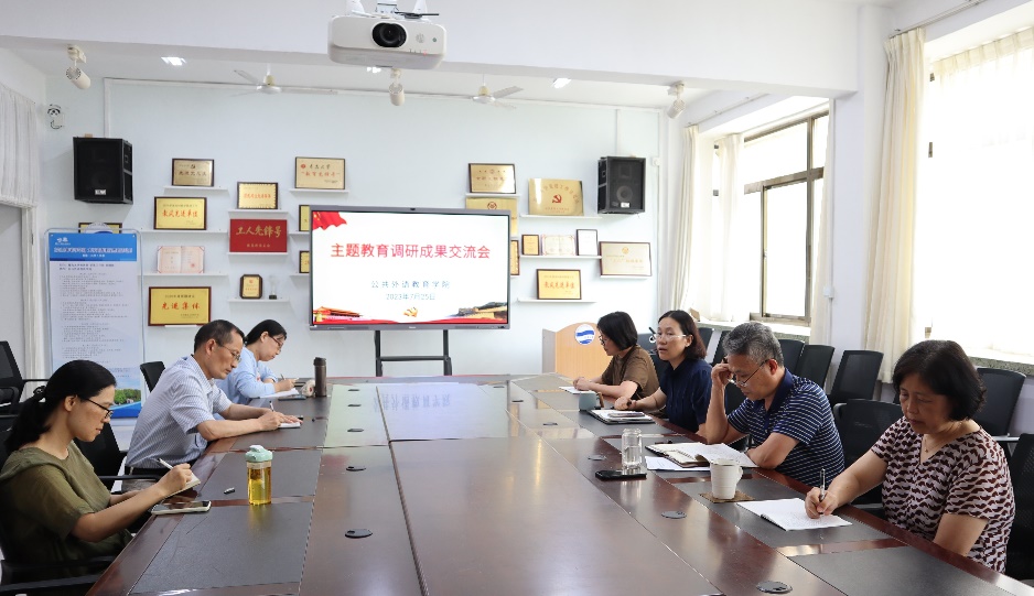 新闻网讯 7月25日下午,公共外语教育学院召开学习贯彻习近平新时代中国特色社会主义思想主题教育调研成果交流会。学院领导班子成员、党支部书记、教研室主任代表参加会议。会议由学院党委书记刘海荣主持。