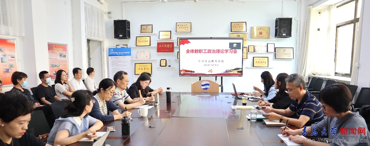 新闻网讯 9月1日上午,公共外语教育学院召开全体教职工政治理论学习会暨学期初工作会议。院党委书记刘海荣主持会议,全院教职工线上线下参会。