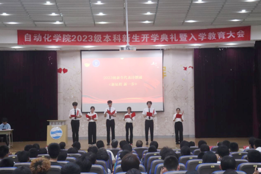 新闻网讯 9月21日下午,自动化学院2023级本科生开学典礼暨入学教育大会在金家岭校区图文中心四楼报告厅举行。学院党委书记张新柏以及各分管领导、班主任代表、各年级辅导员及2023级全体新生参加,典礼由学院党委副书记于宏主持。