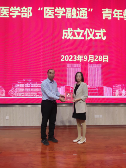 仪式上宣布了“医学融通”青年教师联盟会主任委员和副主任委员名单,公共卫生学院晋小婷教授被聘为主任委员,金明亮等14位教授被聘为副主任委员。随后举行了聘任仪式,颁发聘任证书。