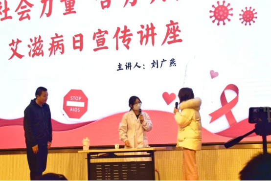 崂山区疾病预防控制中心艾防科副主任刘广燕向师生们宣讲了艾滋病的危害和传播途径,不同地区艾滋病患者的比例与特征,以及如何在日常生活中避免感染艾滋病。她还介绍了医疗机构内部检查、治疗艾滋病的方式及过程,引导大家正视艾滋病,并了解发生特殊情况时的自我保护途径,消除对艾滋病感染者的歧视与偏见。