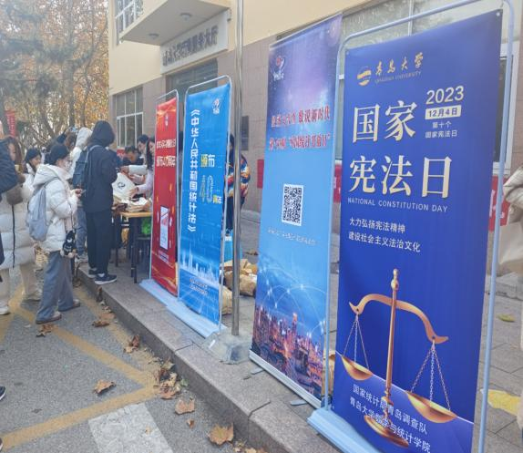 新闻网讯 为深入学习贯彻习近平法治思想和习近平文化思想,让更多人参与到宪法宣传教育中来,12月4日,在第十个国家宪法日,第六个“宪法宣传周”到来之际,国家统计局青岛调查队与YABO鸭脖数学与统计学院在YABO鸭脖浮山校区联合开展法治宣传活动。