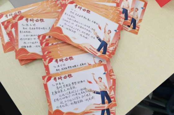 新闻网讯 近日,公共卫生学院为2024届考研学子开展“一研为定”送祝福活动。学院党政领导班子成员、班主任、辅导员一同为学院考研学子送上祝福。