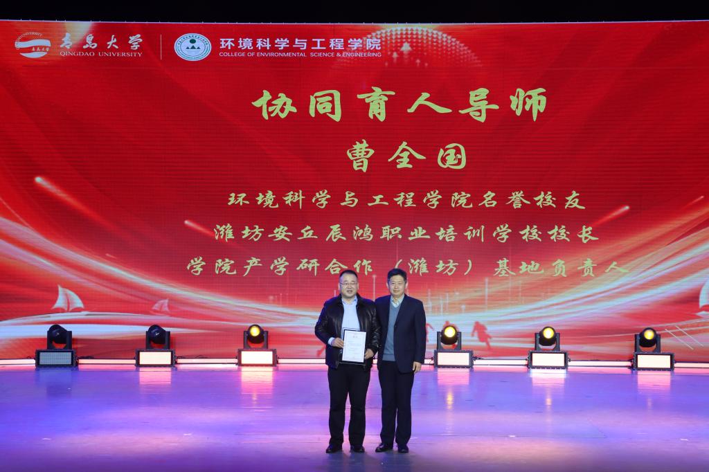 会上学院汇报了2023年学院学团工作开展情况及取得的成绩。表彰了颜冬云老师及团队成员“创新创业工作突出贡献奖”,徐艳、姜志翔2位教师“优秀班主任”,张培玉、唐华等15位教师“考研就业优秀指导教师”,孔凡鑫、朱一凡等12人“学术交流年会优秀论文”,陈明帅、于纪民等6人“优秀海报”,张秀赟、陈鑫等4人“学业之星”,谌亚楠、高文彬等10人“社会实践先进个人”,周奕铭、艾克热木·喀哈尔等5人“文艺体育先进个人”,赵冬莹、刘天艺等14人“志愿服务先进个人”。聘任潍坊安丘辰鸿职业培训学校校长、学院产学研合作(潍坊)基地负责人曹全国“协同育人导师”。院党委书记张作祥,院长佘希林,青岛容广电子技术有限公司董事长黄祖旭,协同育人导师曹全国,院党委副书记孙竹媛,副院长孔范龙、赵宗山,院长助理陈光辉、朱玉坤为受表彰的集体和个人颁奖。