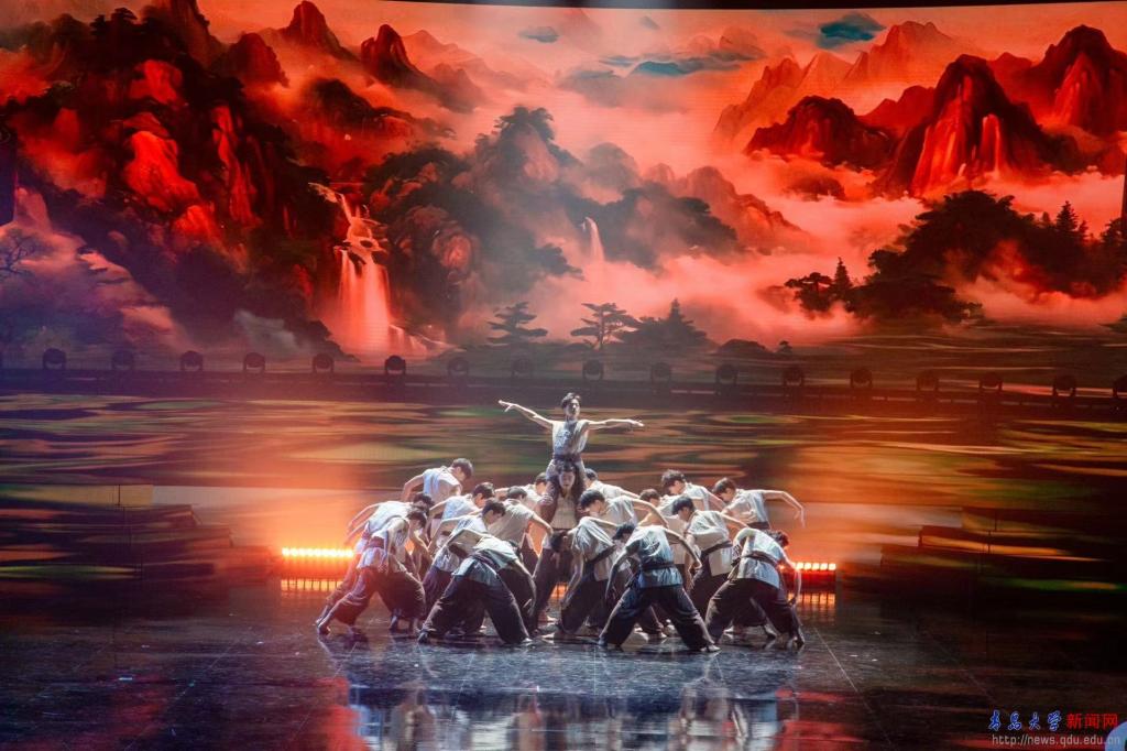 此次春晚由青岛市委宣传部、青岛市文化和旅游局主办,青岛市广播电视台承办,是春节期间青岛市民最为期待的一场文化大餐。音乐学院在12月中旬接到青岛市委宣传部的邀请函之后便迅速召集相关人员进行开会,确定了舞蹈系26名男生的演出阵容,并由舞蹈系系主任张琪玲与青年教师李斌作为主要带队、排练教师。在本学期期末考试结束之后,舞蹈系的26名男生也克服了天气寒冷、生病等众多的困难,承担了男子群舞《山海》、歌曲《誓用生命迎接胜利》以及歌曲《酒来》的伴舞任务,在舞台上完美展现了鸭脖舞蹈学子的风采,受到了节目组的一致好评。