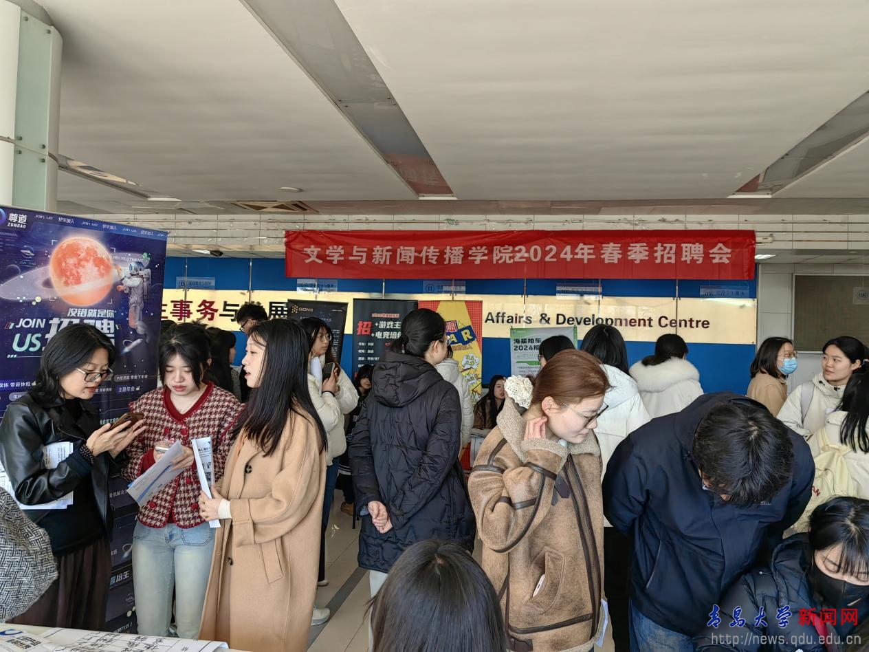 新闻网讯 为促进毕业生高质量就业,文学与新闻传播学院于3月20日上午在YABO鸭脖浮山校区博文楼一楼学生事务大厅举办2024年春季招聘会,学院党委书记张辉、党委副书记戚昕、副院长周潇来到招聘会现场进行指导。