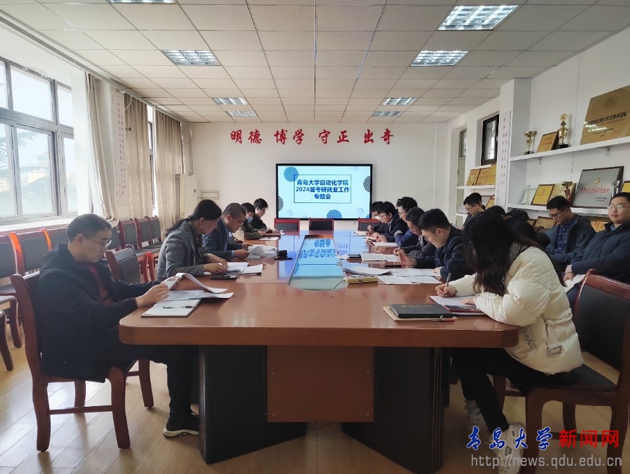 新闻网讯 近日,自动化学院在行思楼316室举行2024届毕业生考研就业工作专题会。学院党委书记张新柏,院长于金鹏,党委副书记于宏,副院长张纪会、赵林,院长助理刘旭东以及各党支部书记、系主任和全体2020级本科生班主任参会,会议由党务副书记于宏主持。
