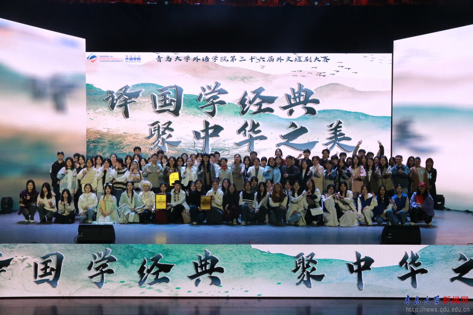 新闻网讯 4月23日晚,外语学院第二十六届外文短剧大赛在鸭脖剧院隆重举行。本次大赛以“译国学经典,聚中华之美”为主题,旨在通过多语种演绎,深入挖掘传统文化的奥秘,展现传承传统文化的力量。