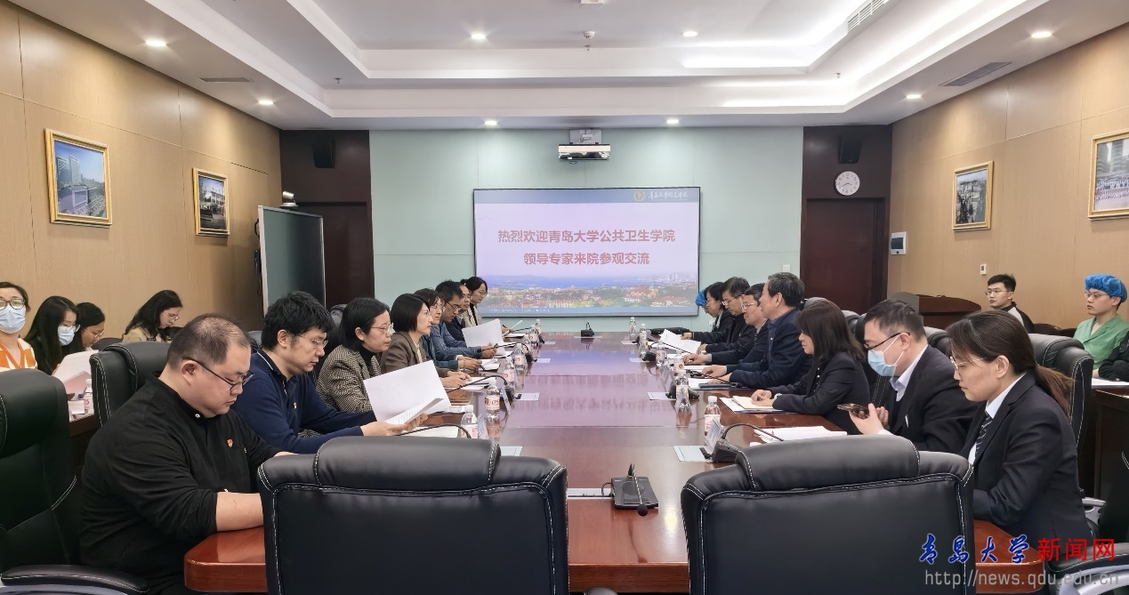 宁险峰对公共卫生学院一行表示热烈欢迎。他介绍了附属医院的整体情况,重点介绍了附院在基层党建、崂山院区建设等方面取得的经验和成果。他希望进一步加强与公共卫生学院在党建、教学、科研方面的合作,资源互补、强强联合,实现更大突破。