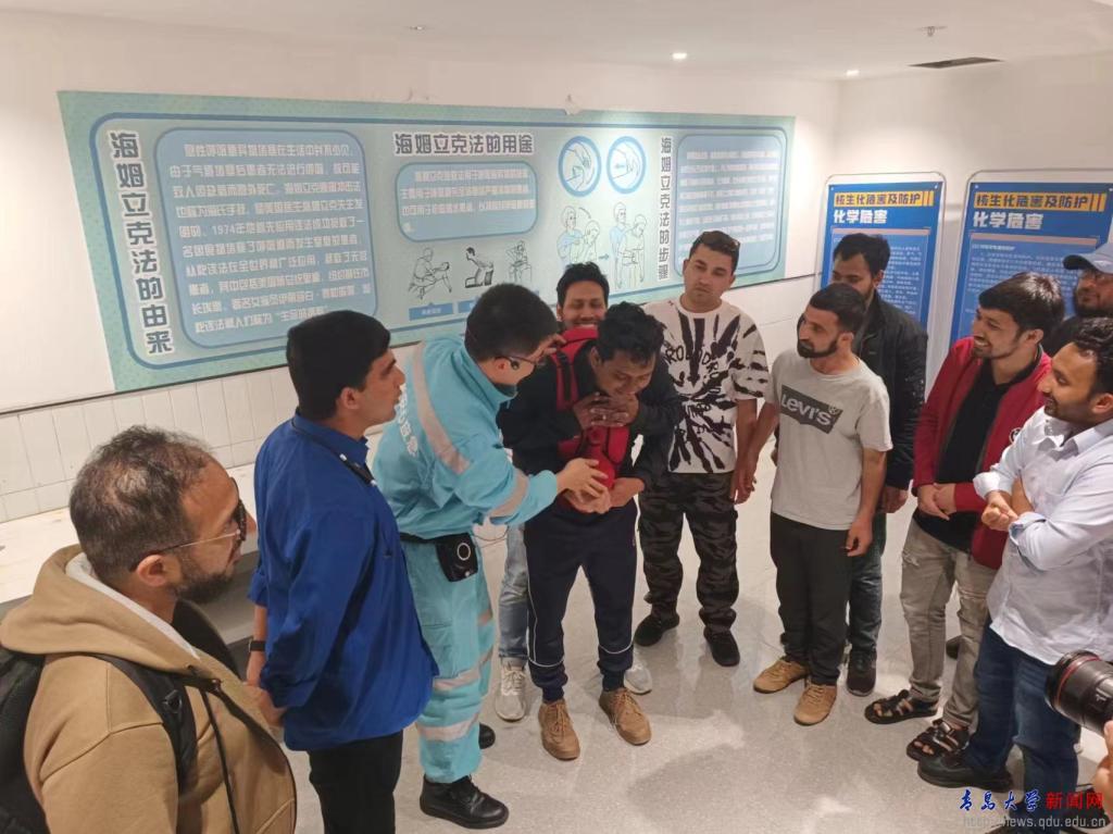 现场,留学生们在专业人士的指导下了解了反邪教宣传、反电诈教育、禁毒教育、消防安全、医疗救护、防溺水体验、交通安全、校园安全等安全教育知识,学习了心肺复苏术、海姆立克法、简易结绳方法等应急安全知识,并进行了高层模拟逃生缓降体验。留学生们通过体验式、沉浸式的安全学习,进一步增强外国留学生的防灾减灾意识,学习安全应急知识,提升应急避险自救的能力。